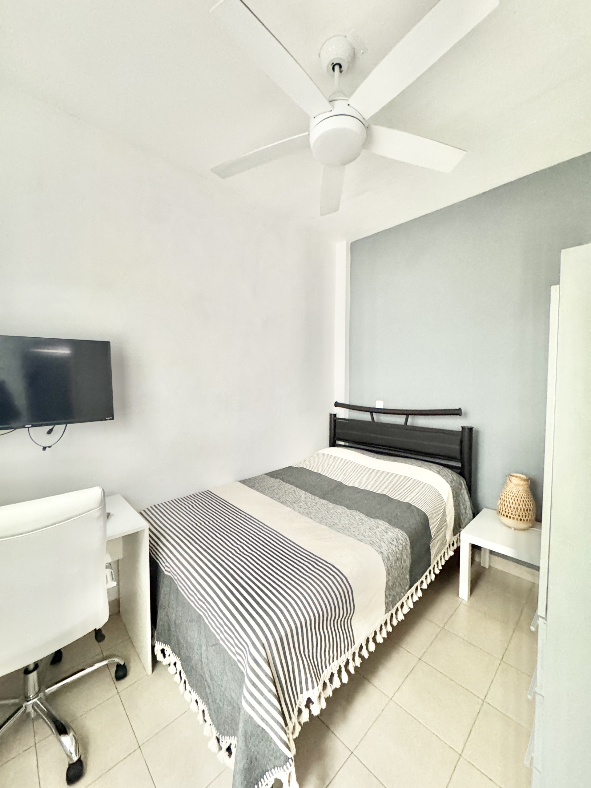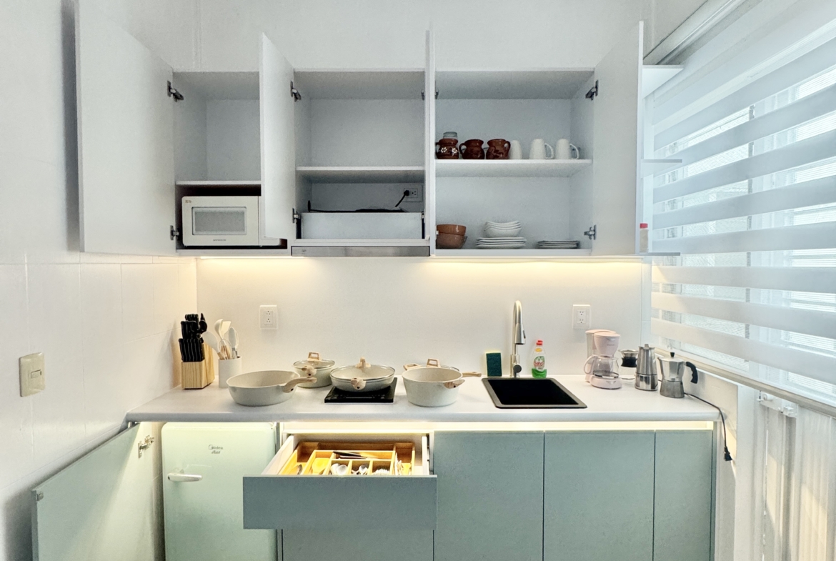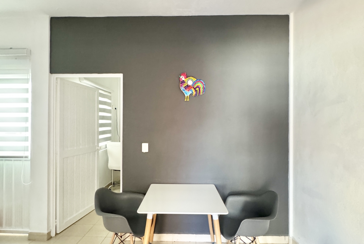 You will get a perfectly clean apartment with 2 pairs of sheets a paper roll, soap and a towel. Right now I don’t have a full-time maid so if you want further cleanings you will have to let me know in advance to make appointments with the cleaner. Full cleaning of the apartment has a price of 250 pesos, full cleaning of the apartment with a change of sheets and a towel has a price of 350 pesos. There are cleaning tools in a small room in front of the building that you can use in case you want to clean yourself. The laundry is located about 5 minutes walking you can wash there your clothes and your sheets and towel.