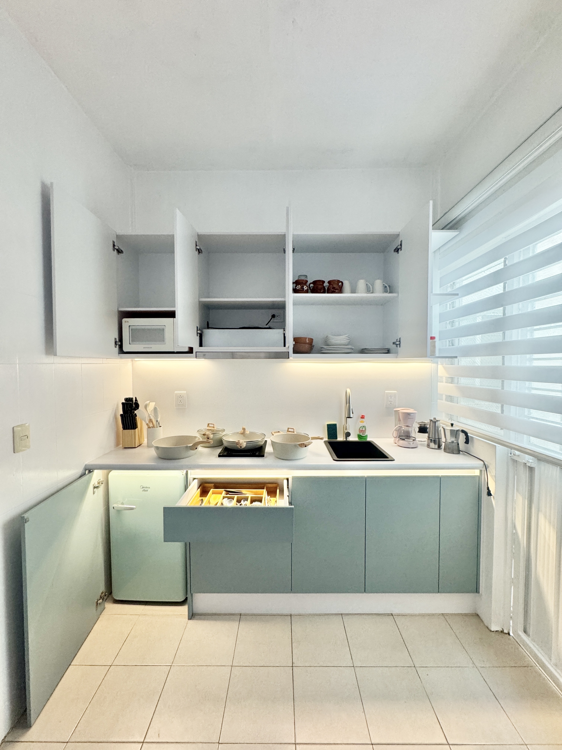 The flat is a turn-key rental. You are responsible for your consumables including drinking water. There is a grocery store two minutes from the apartment and a Chedrahui store which is the Mexican version of Walmart, it is 8 minutes walking.